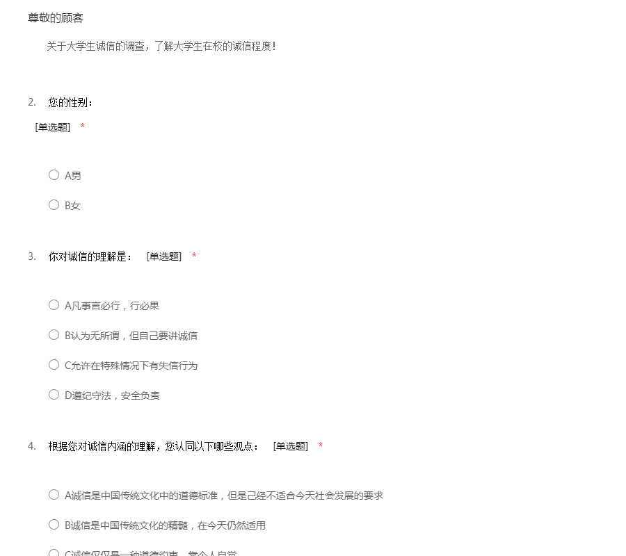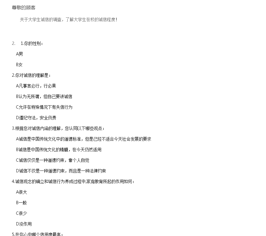 关于大学生诚信的调查,了解大学生在校的诚信程度!