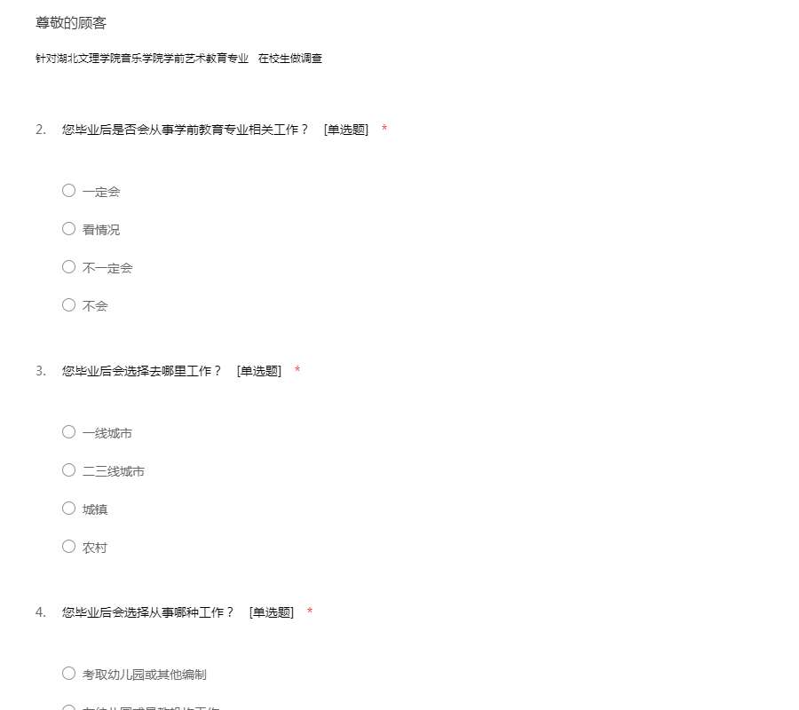 针对湖北文理学院音乐学院学前艺术教育专业 在校生做调查