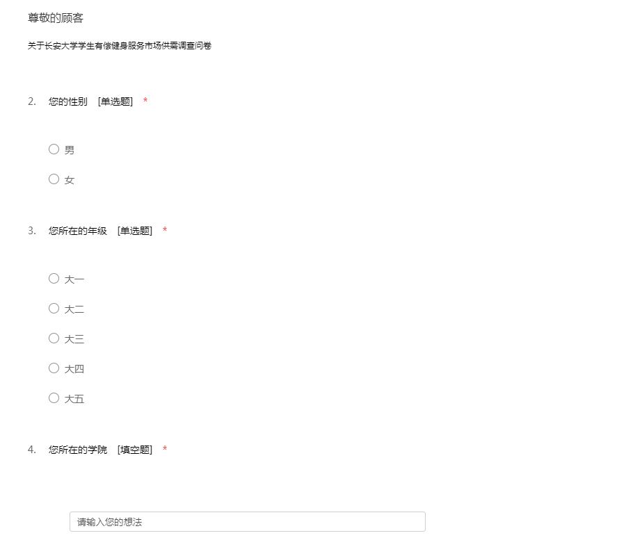 长安大学学生有偿健身服务市场供需调查问卷
