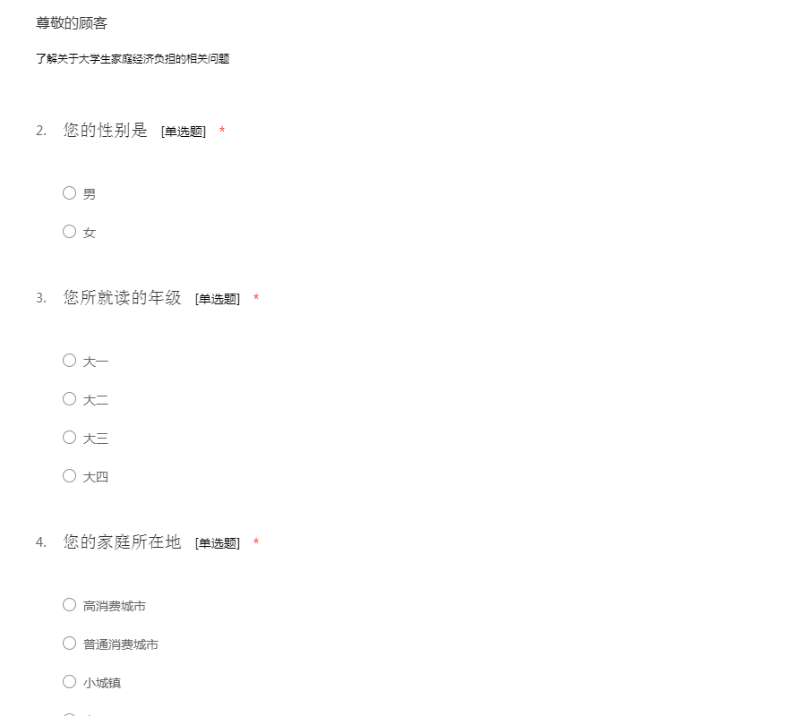 大学生家庭经济负担状况问卷调查