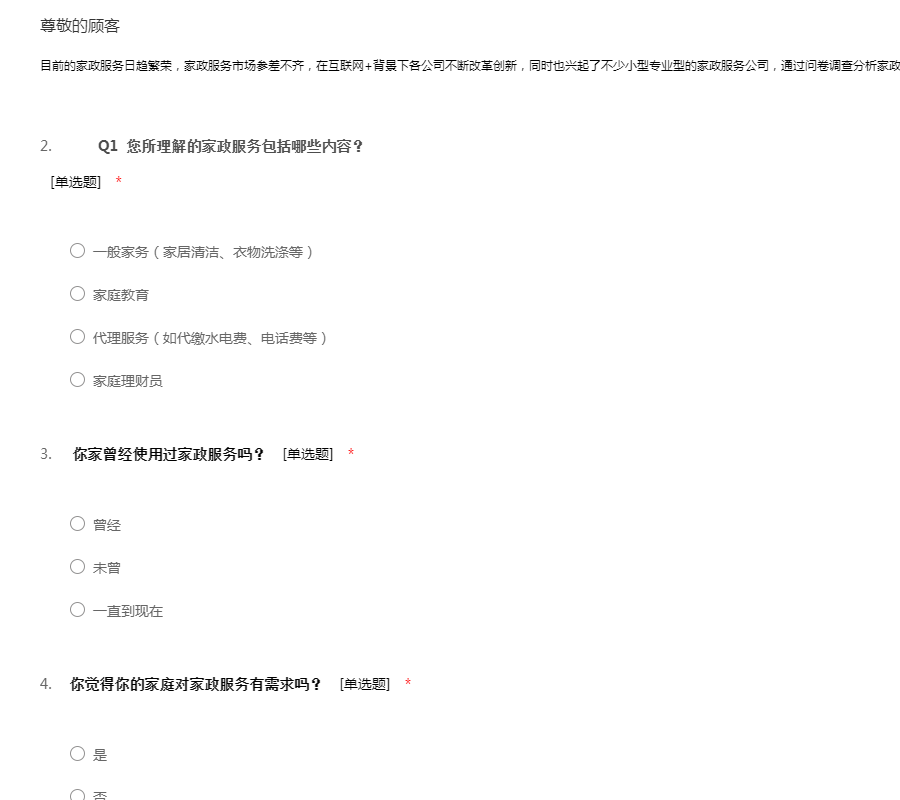 关于大学生家政服务的调查问卷