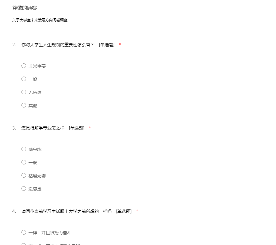 关于大学生未来方向规划调查表