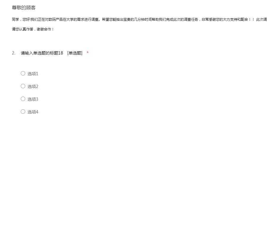 同学,您好!我们正在对数码产品在大学的需求进行调查。希望您能抽出宝贵的几分钟时间帮助我们完成此次的调查任务,非常感谢您的大力支持和配合!! 此次调查没有对错之分,并且不会泄露您的任何隐私,请您认真作答,谢谢合作!