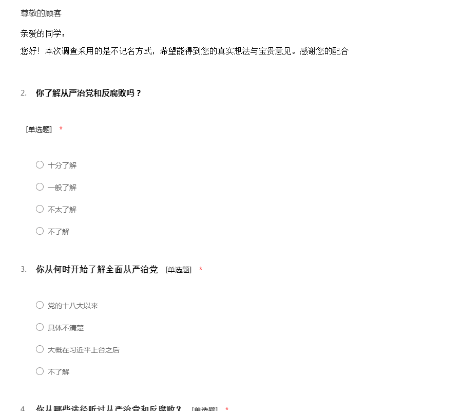 大学生对全面从严治党和反腐败的认识的情况调查