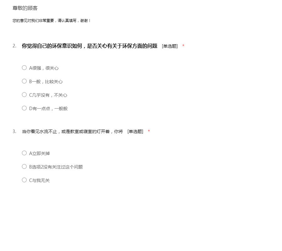 亲爱的同学: 您好!本次调查采用的是不记名方式,希望能得到您的真实想法与宝贵意见。感谢您的配合