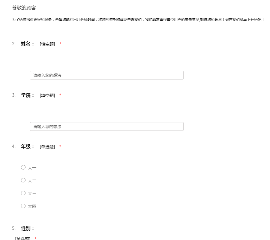 为了给您提供更好的服务,希望您能抽出几分钟时间,将您的感受和建议告诉我们,我们非常重视每位用户的宝贵意见,期待您的参与!现在我们就马上开始吧!