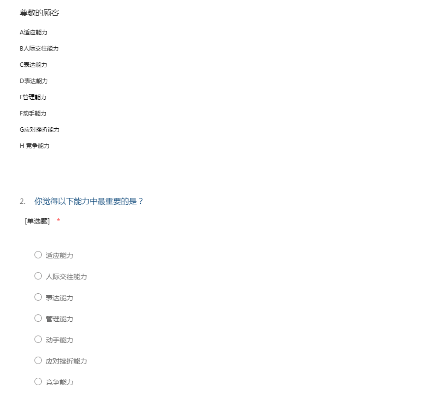 A适应能力B人际交往能力C表达能力D表达能力E管理能力F动手能力G应对挫折能力H 竞争能力