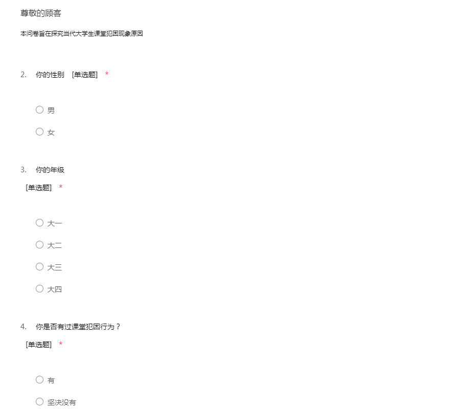 本问卷旨在探究当代大学生课堂犯困现象原因