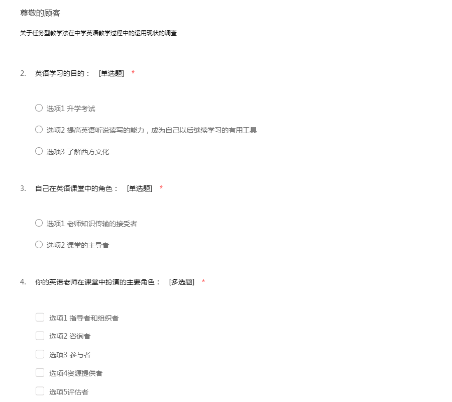 关于任务型教学法在中学英语教学过程中的运用现状的调查