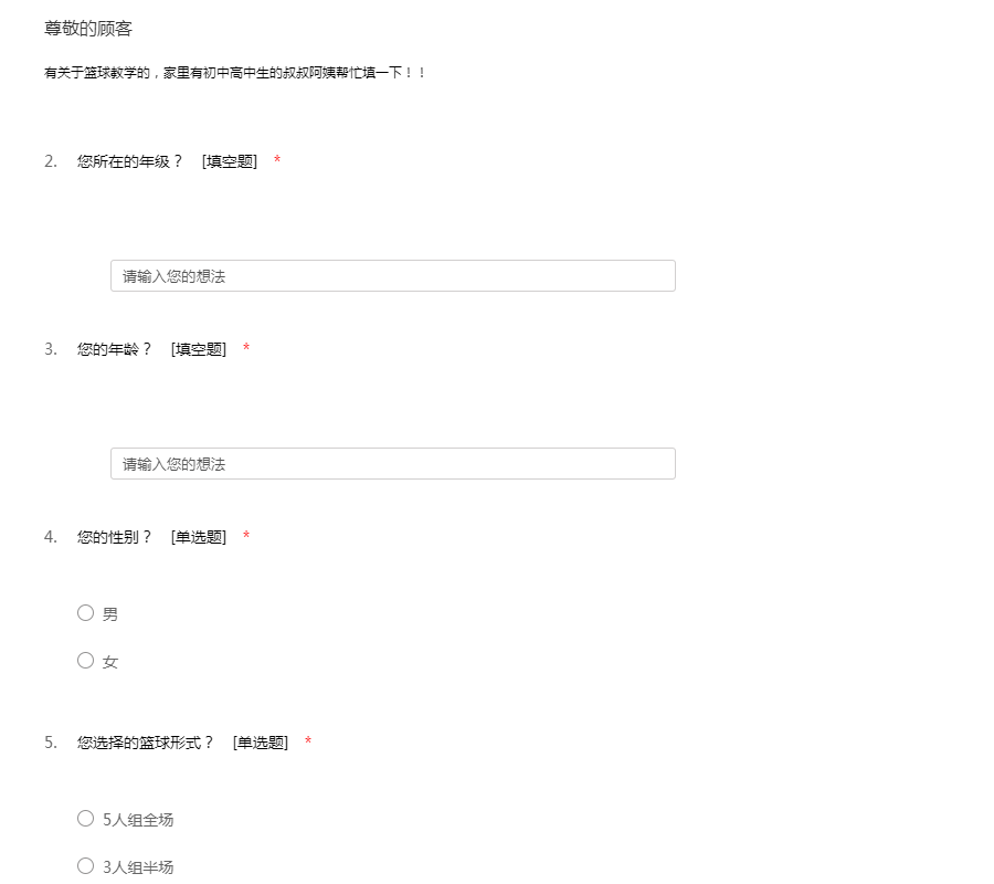 有关于篮球教学的,家里有初中高中生的叔叔阿姨帮忙填一下!!