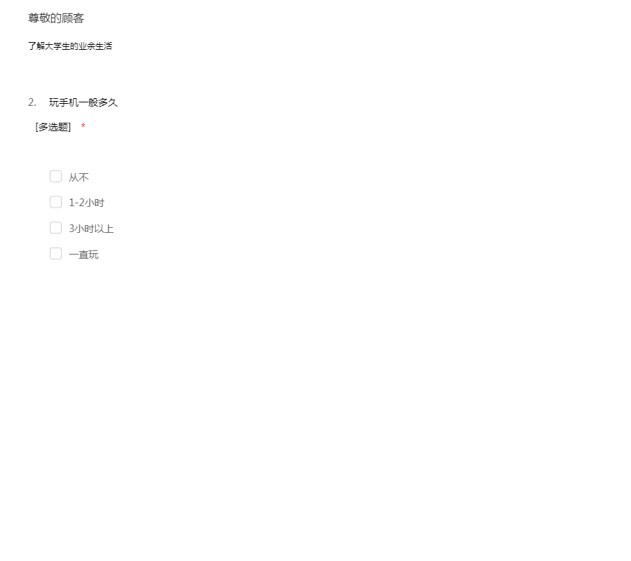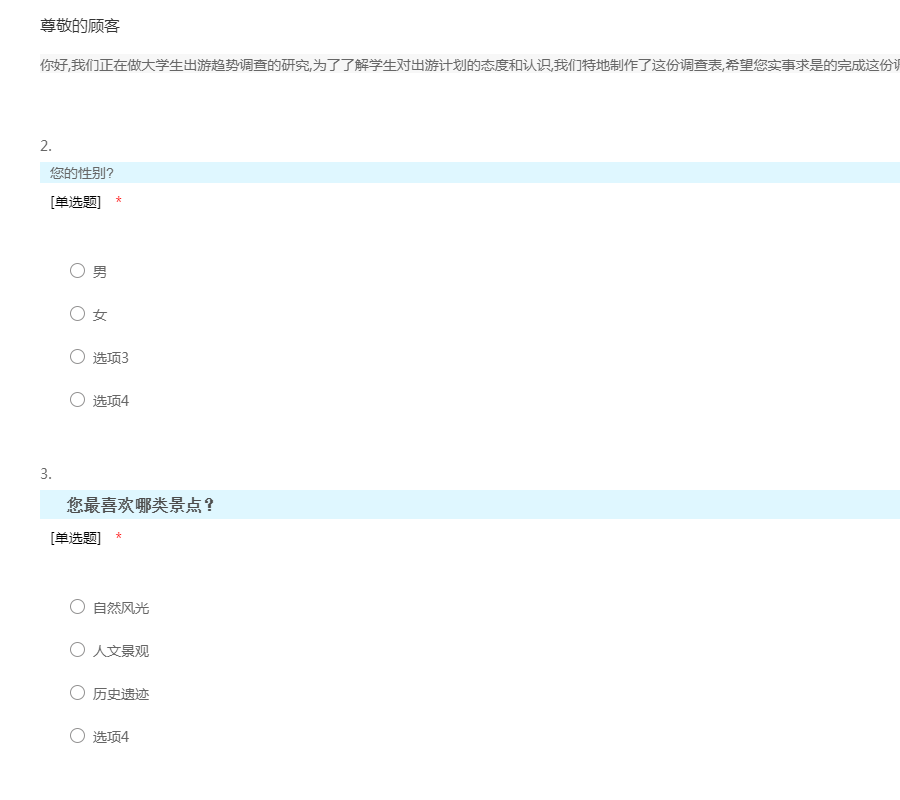 你好,我们正在做大学生出游趋势调查的研究,为了了解学生对出游计划的态度和认识,我们特地制作了这份调查表,希望您实事求是的完成这份调查表.