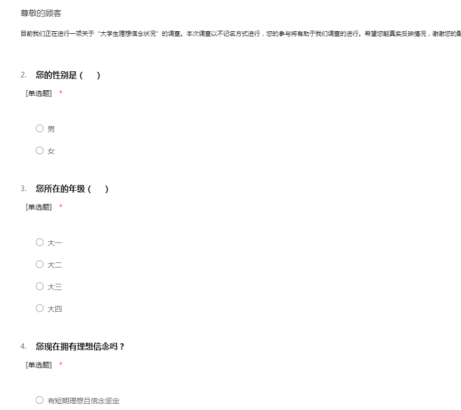 大学生理想信念状况调查问卷