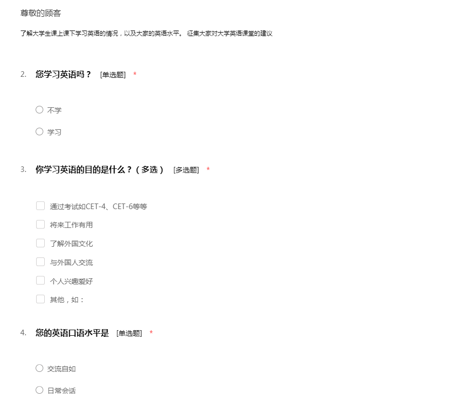 大学英语学习调查问卷