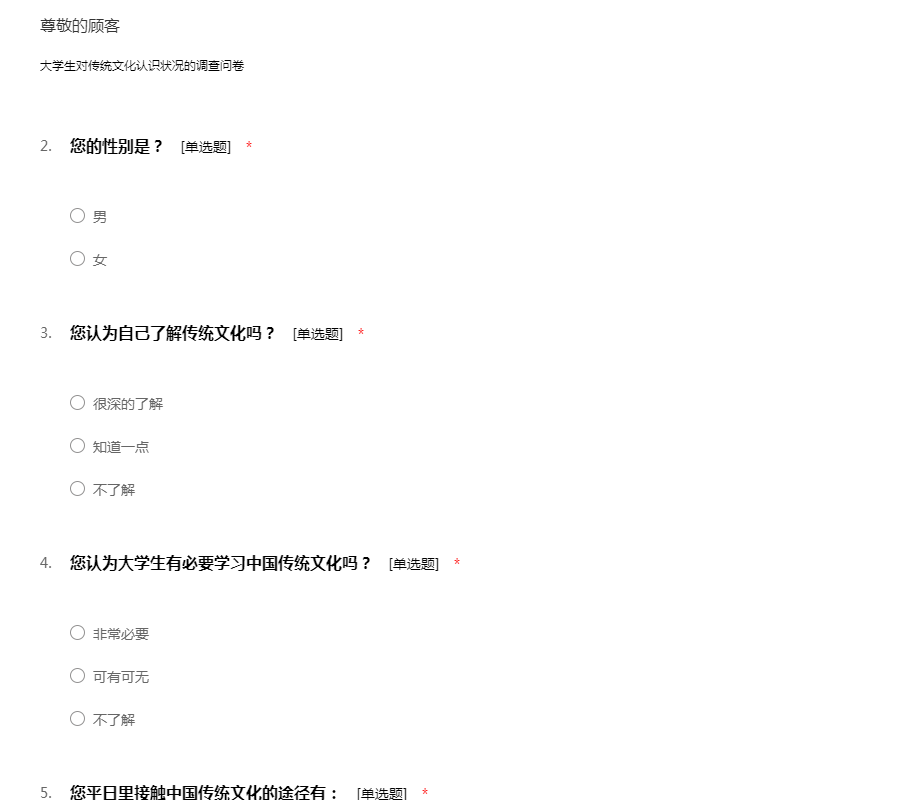 大学生对传统文化认识状况的调查问卷