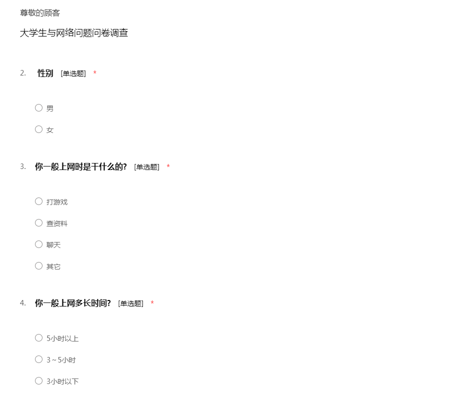 大学生与网络问题问卷调查