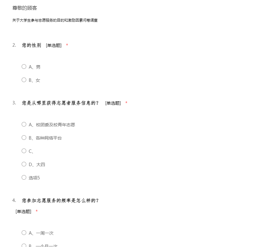 关于大学生参与志愿服务的目的和激励因素问卷调查