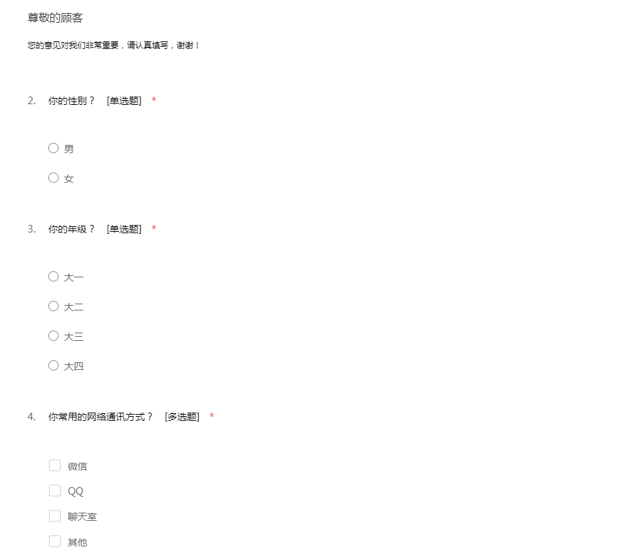 您的意见对我们非常重要,请认真填写,谢谢!