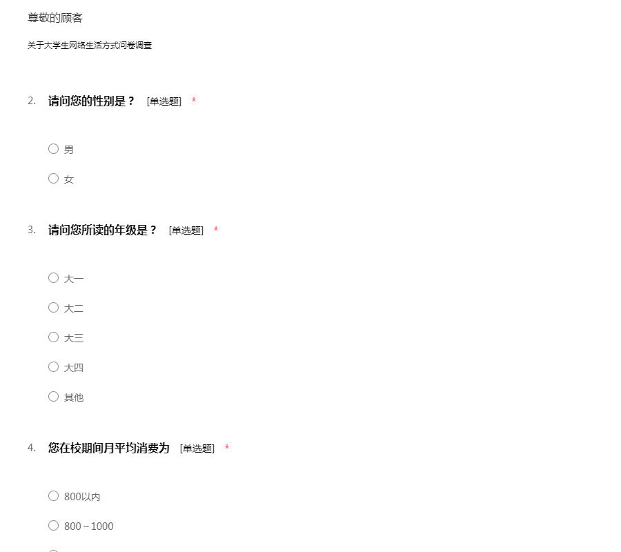 关于大学生网络生活方式问卷调查