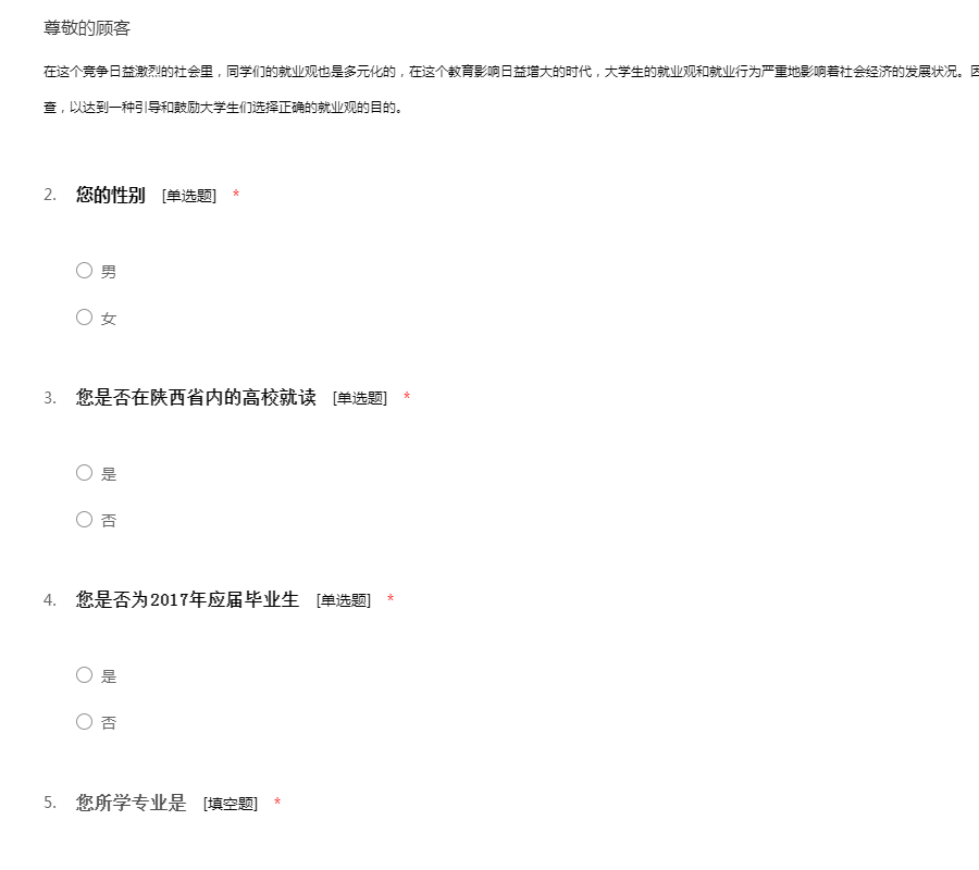 在这个竞争日益激烈的社会里,同学们的就业观也是多元化的,在这个教育影响日益增大的时代,大学生的就业观和就业行为严重地影响着社会经济的发展状况。因此,我们有必要对大学生的就业愿景进行一次调查,以达到一种引导和鼓励大学生们选择正确的就业观的目的。