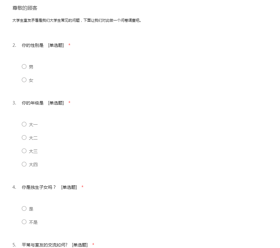 大学生室友矛盾是我们大学生常见的问题,下面让我们对此做一个问卷调查吧。