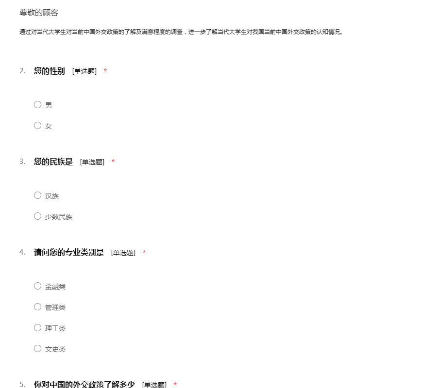 大学生对中国外交政策的满意程度调查问卷