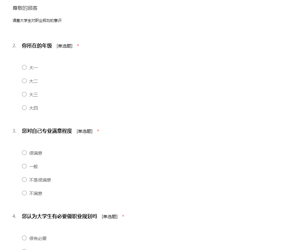 调查大学生对职业规划的意识
