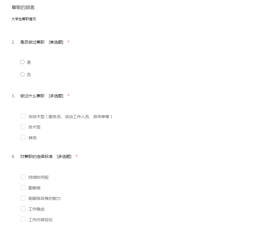 大学生兼职情况