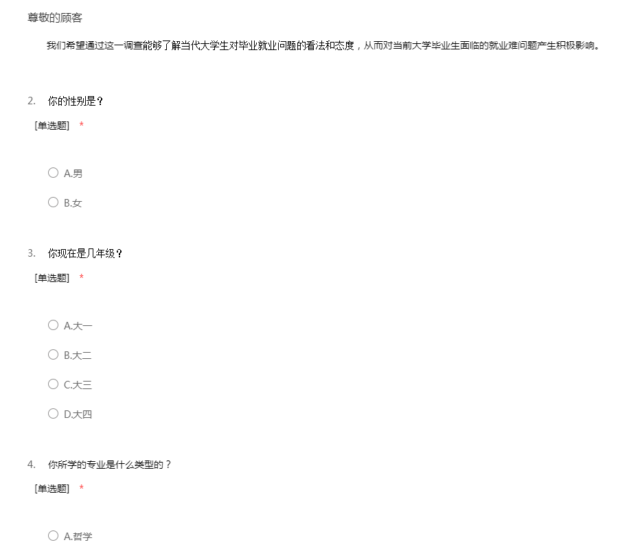 我们希望通过这一调查能够了解当代大学生对毕业就业问题的看法和态度,从而对当前大学毕业生面临的就业难问题产生积极影响。