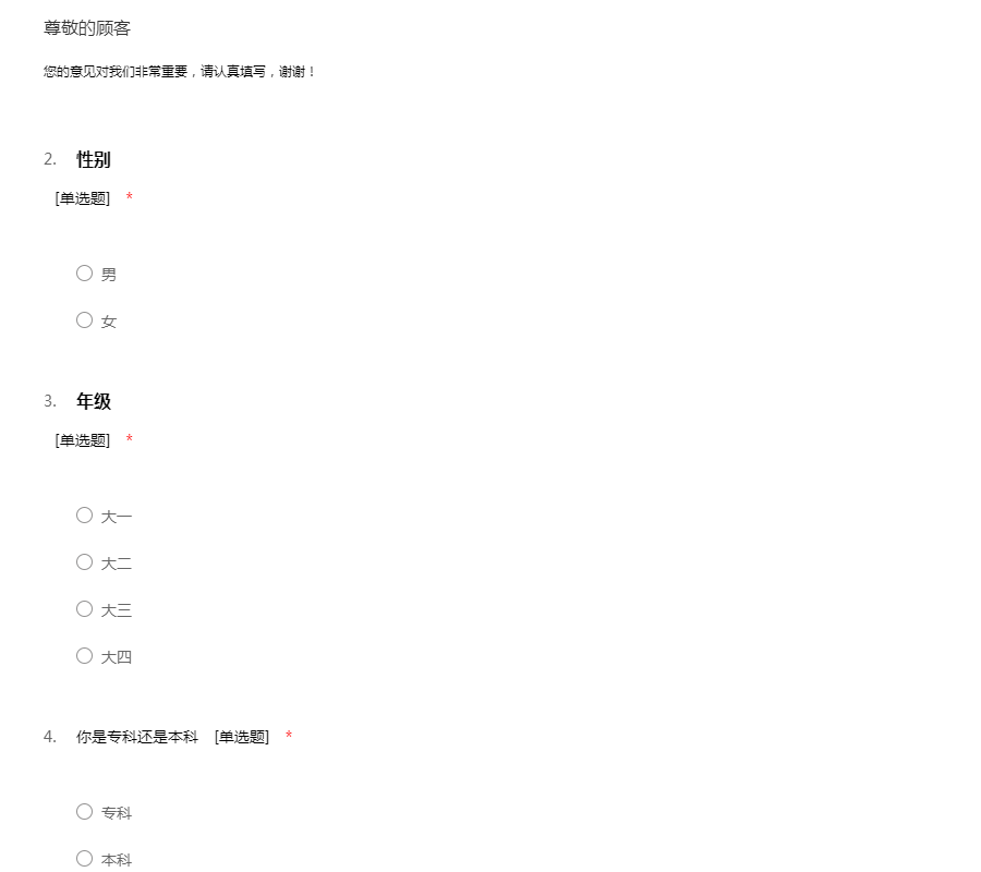 您的意见对我们非常重要,请认真填写,谢谢!