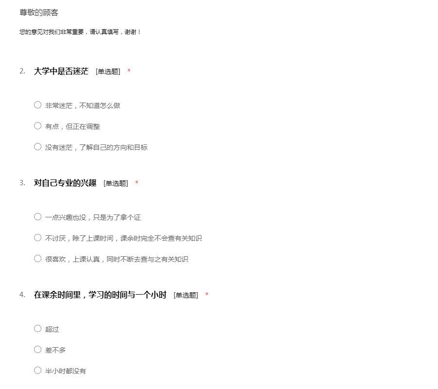 团委学生会调查问卷