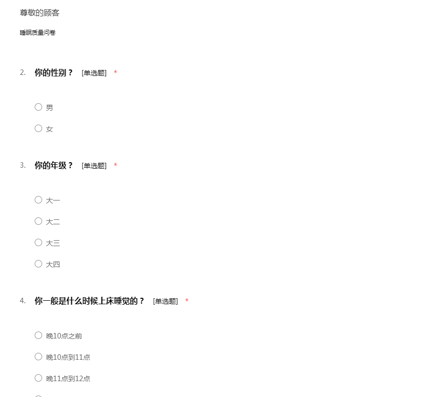 大学生睡眠质量调查问卷