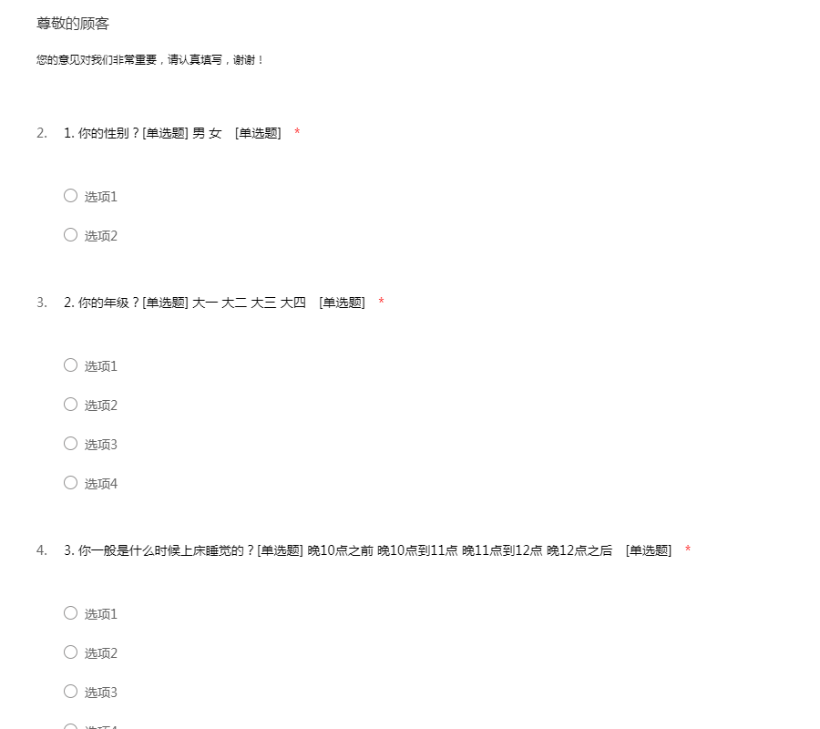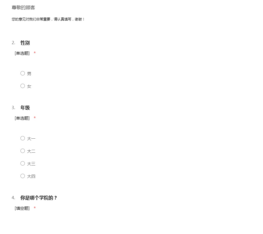 亲爱的同学: 您好! 我们是中山大学南方学院的学生,为了了解广州大学生的阅读情况(包括纸质版与电子版阅读),我们正在进行关于大学生的阅读情况的调查,该问卷采取不记名问卷形式,我们会对您的回答严格保密,您所提供的答案将对我们的研究十分有帮助,请根据个人实际情况填写,十分感谢您在百忙之中抽空来协助我们完成调查问卷!