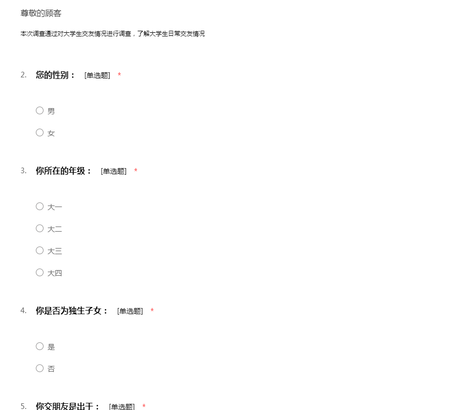 本次调查通过对大学生交友情况进行调查,了解大学生日常交友情况