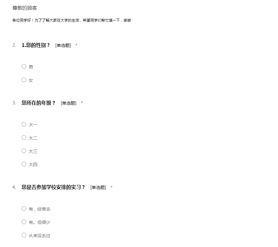 因为毕业需要,希望您花费几分钟时间,您的意见对我们非常重要,谢谢!