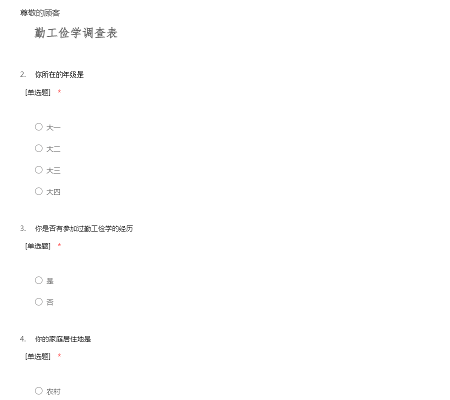 同学,您好!我是吉林工商学院金融专业的一名学生。我们正在进行“大学生创业”的调查,本次问卷调查是课题研究的部分内容之一。调查的目的是了解当今大学生对创业行为,创业教育,创业政策,创业环境的认识与理解。现在需要占用您宝贵的几分钟时间完成一下,请您认真做答,谢谢您的配合!