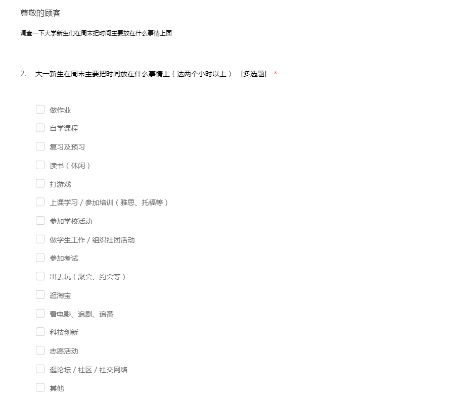 调查一下大学新生们在周末把时间主要放在什么事情上面