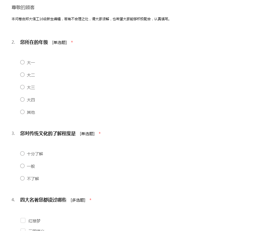本问卷由郑大信工16级新生编辑,若有不合理之处,请大家谅解,也希望大家能够积极配合,认真填写。