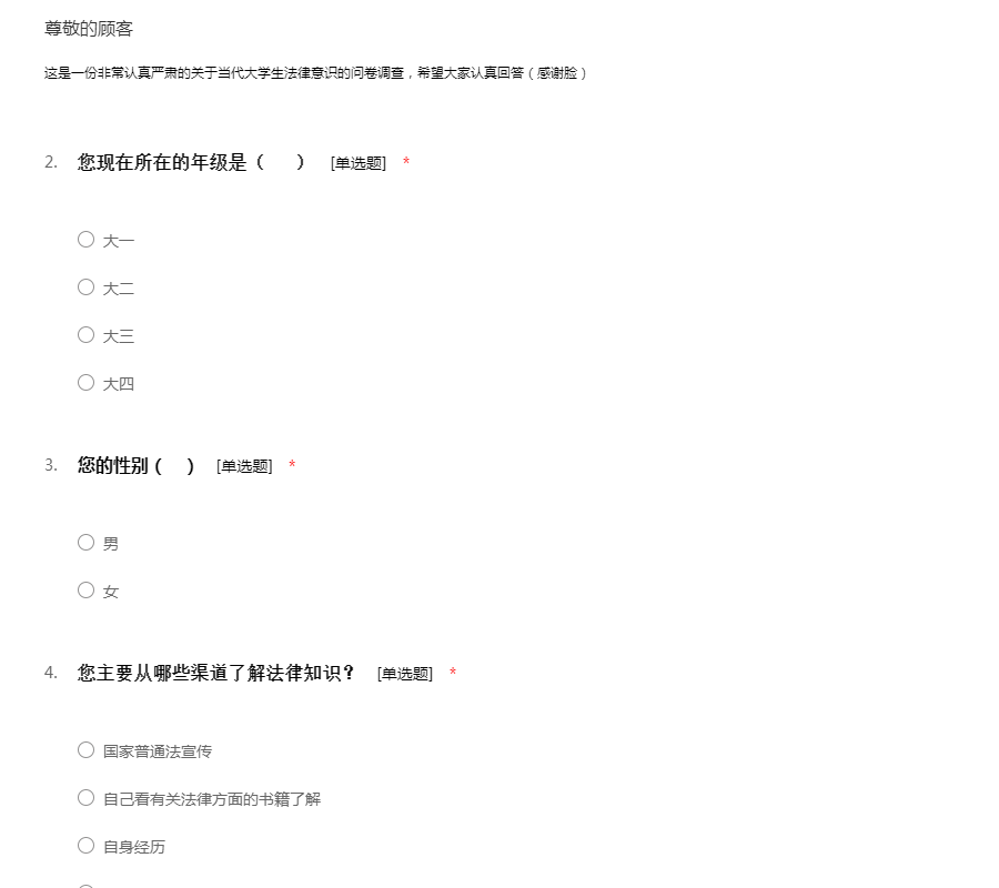 这是一份非常认真严肃的关于当代大学生法律意识的问卷调查,希望大家认真回答(感谢脸)