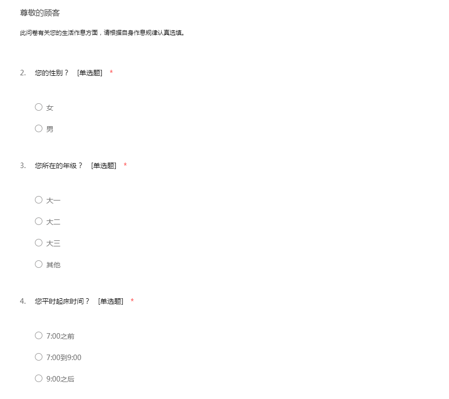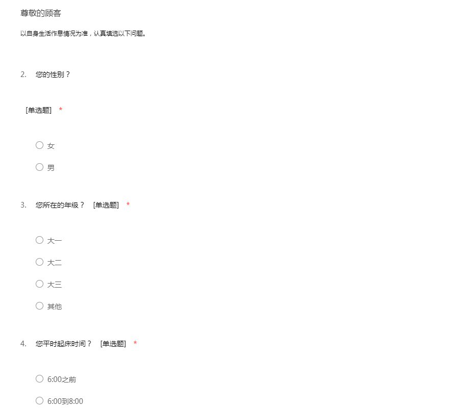 此问卷有关您的生活作息方面,请根据自身作息规律认真选填。