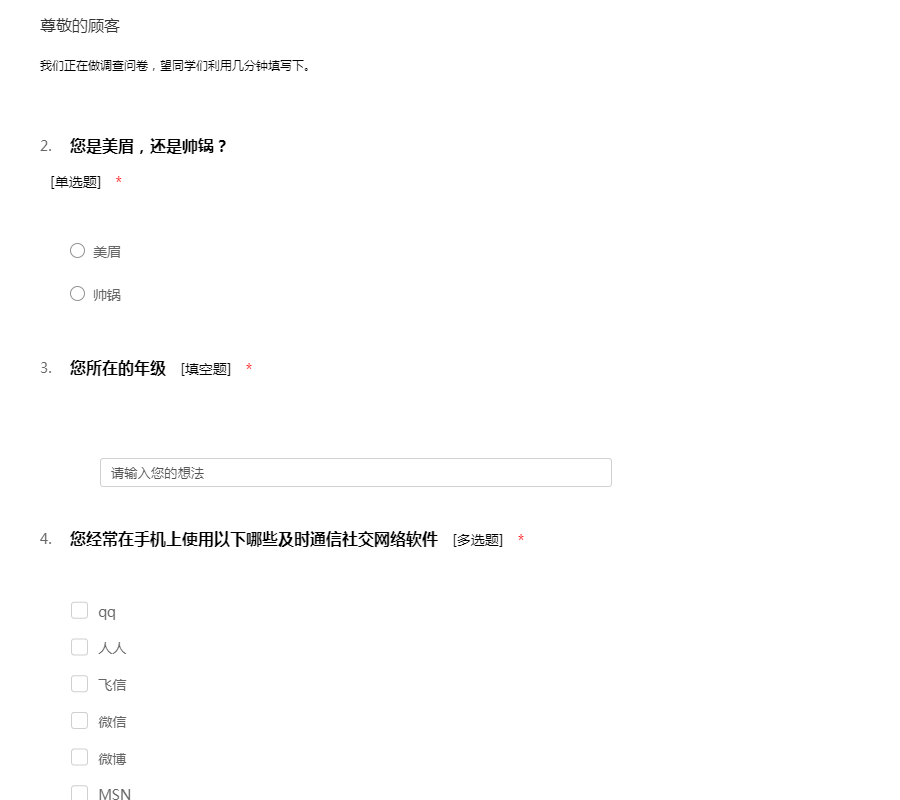 我们正在做调查问卷,望同学们利用几分钟填写下。
