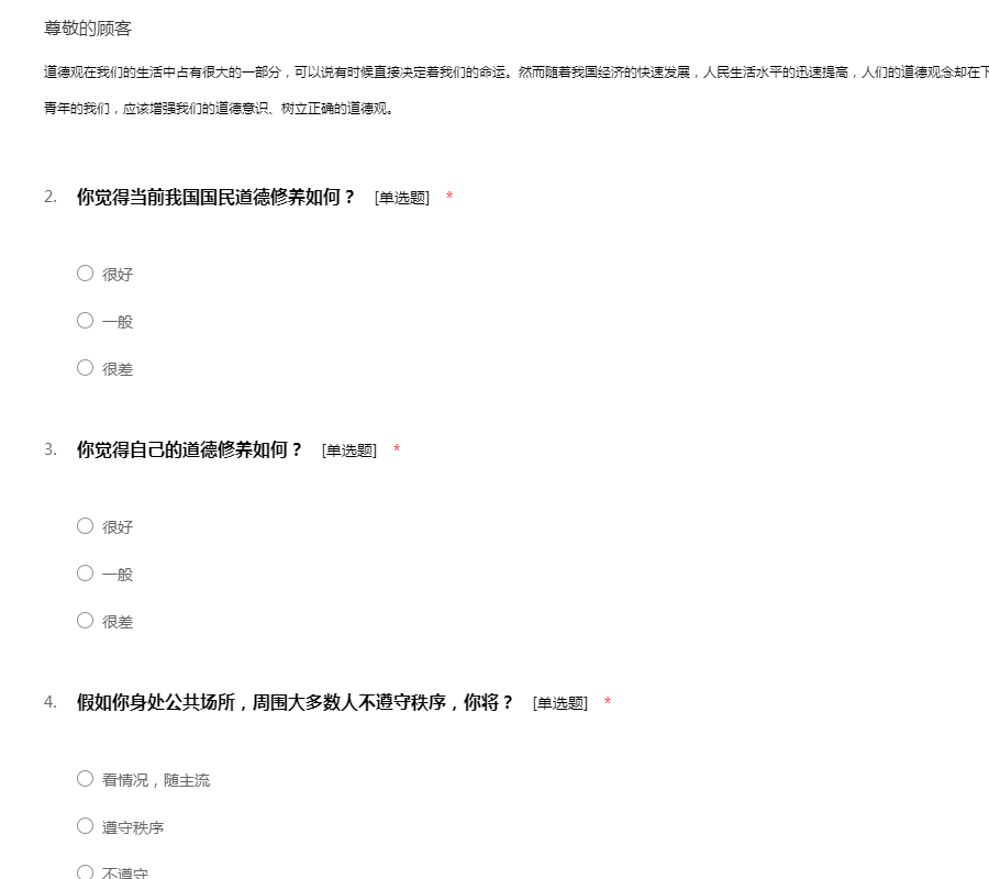 大学生思想道德修养调查问卷