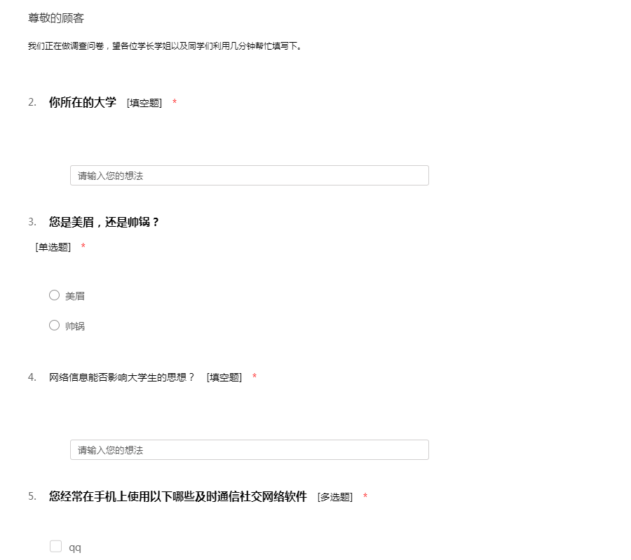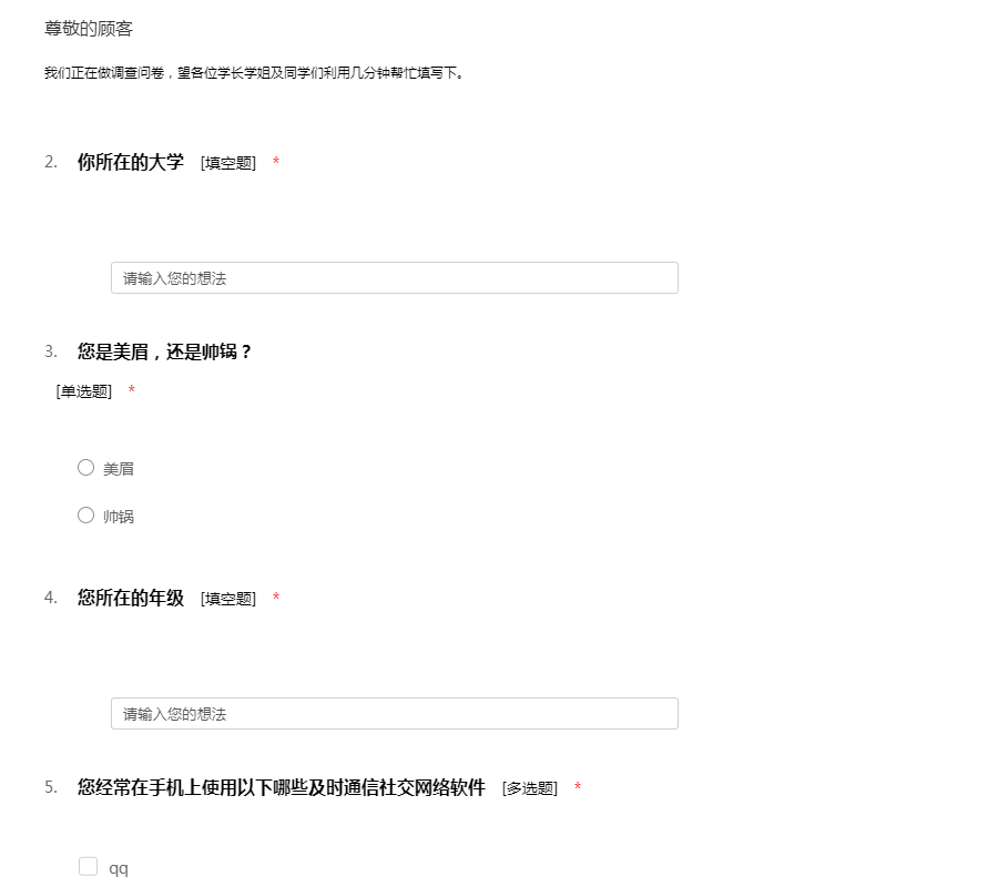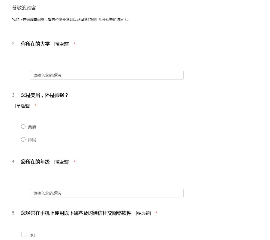 我们正在做调查问卷,望各位学长学姐以及同学们利用几分钟帮忙填写下。
