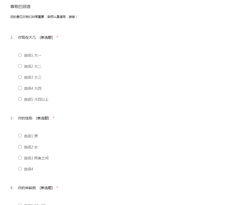 您的意见对我们非常重要,麻烦认真填写,谢谢!