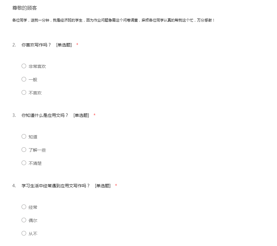 我们正在做调查问卷,望各位学长学姐及同学们利用几分钟帮忙填写下。