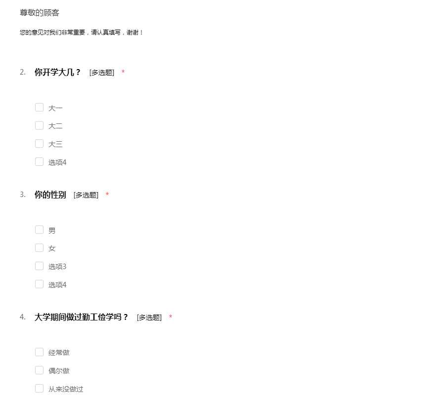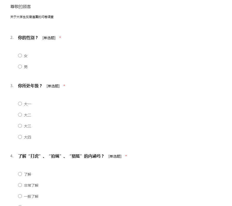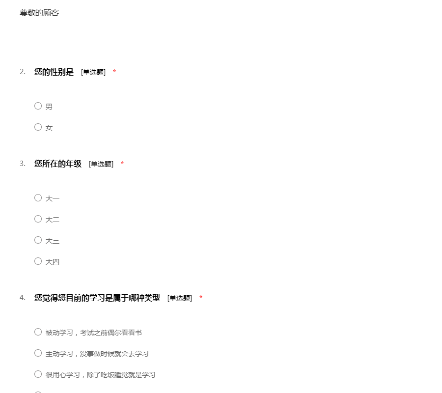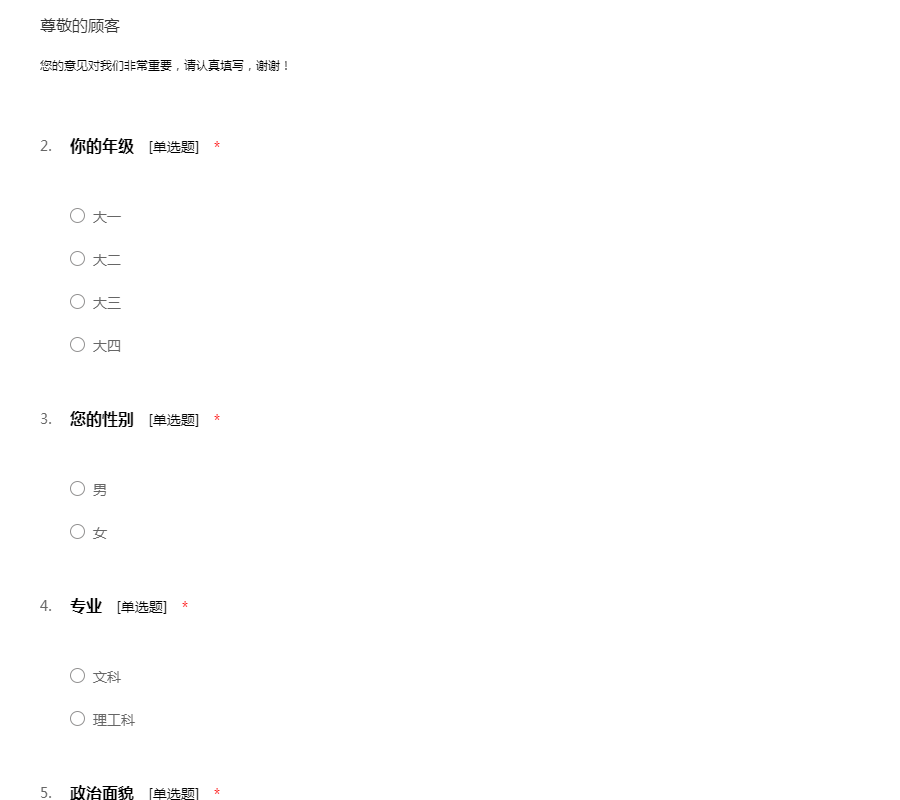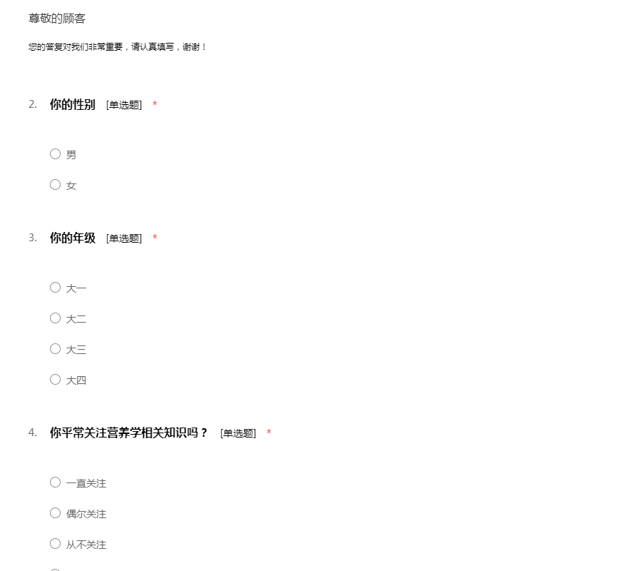 此次问卷不记名,绝对不会泄漏您的个人信息,请如实回答。