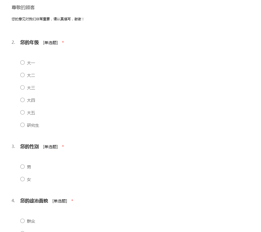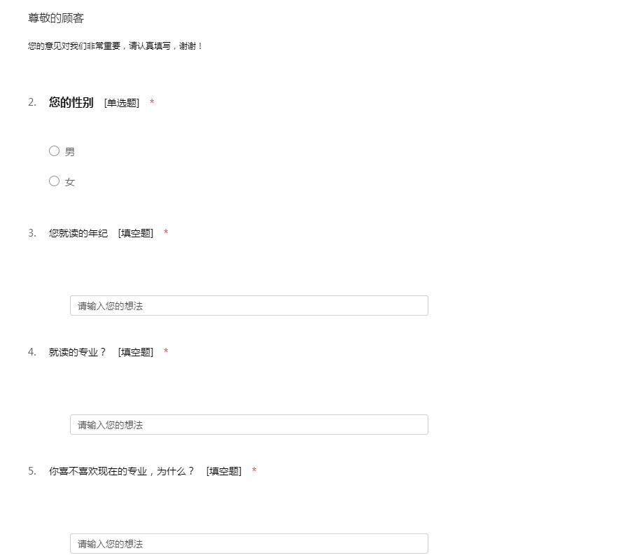 您的意见对我们非常重要,请认真填写,谢谢!