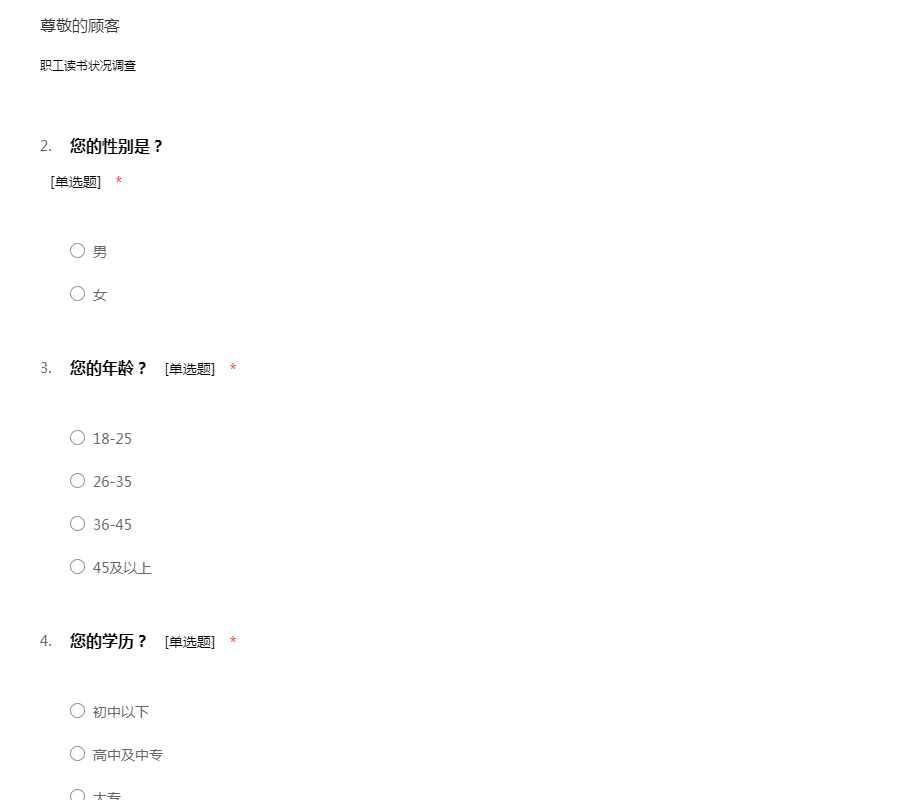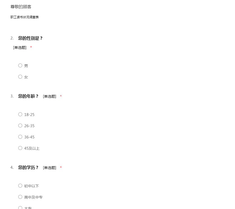 职工读书状况调查表