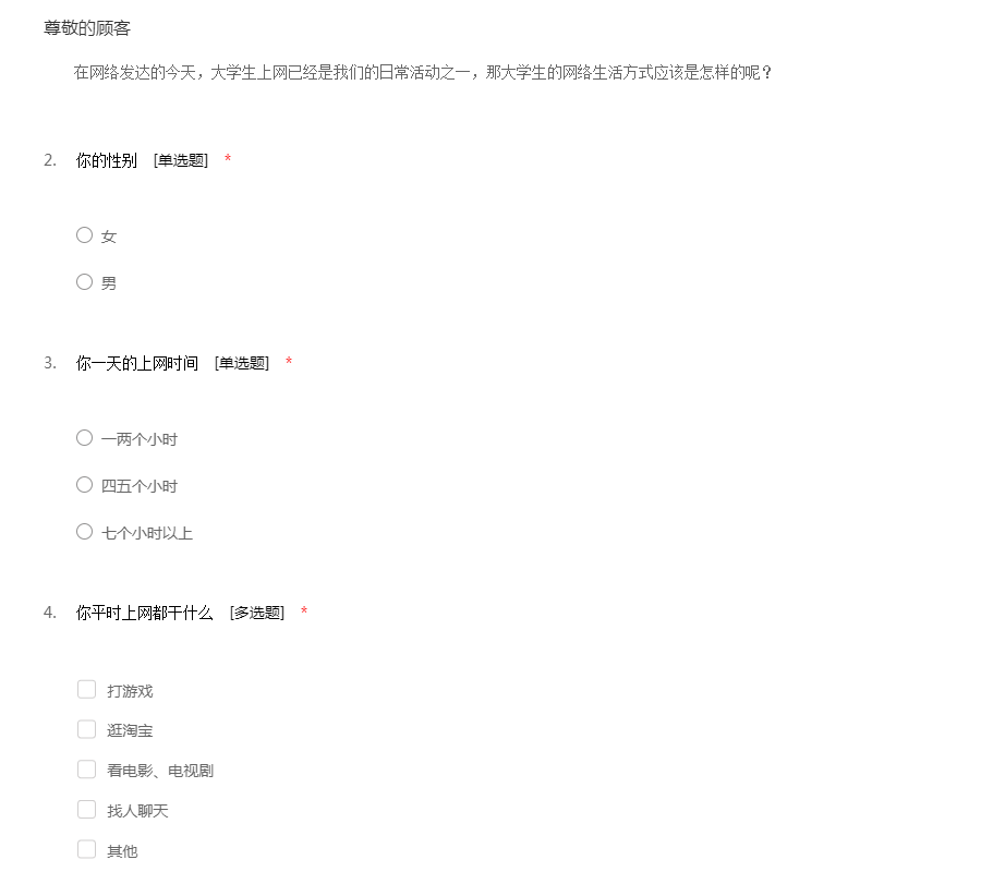 关于大学生网络生活的调查问卷