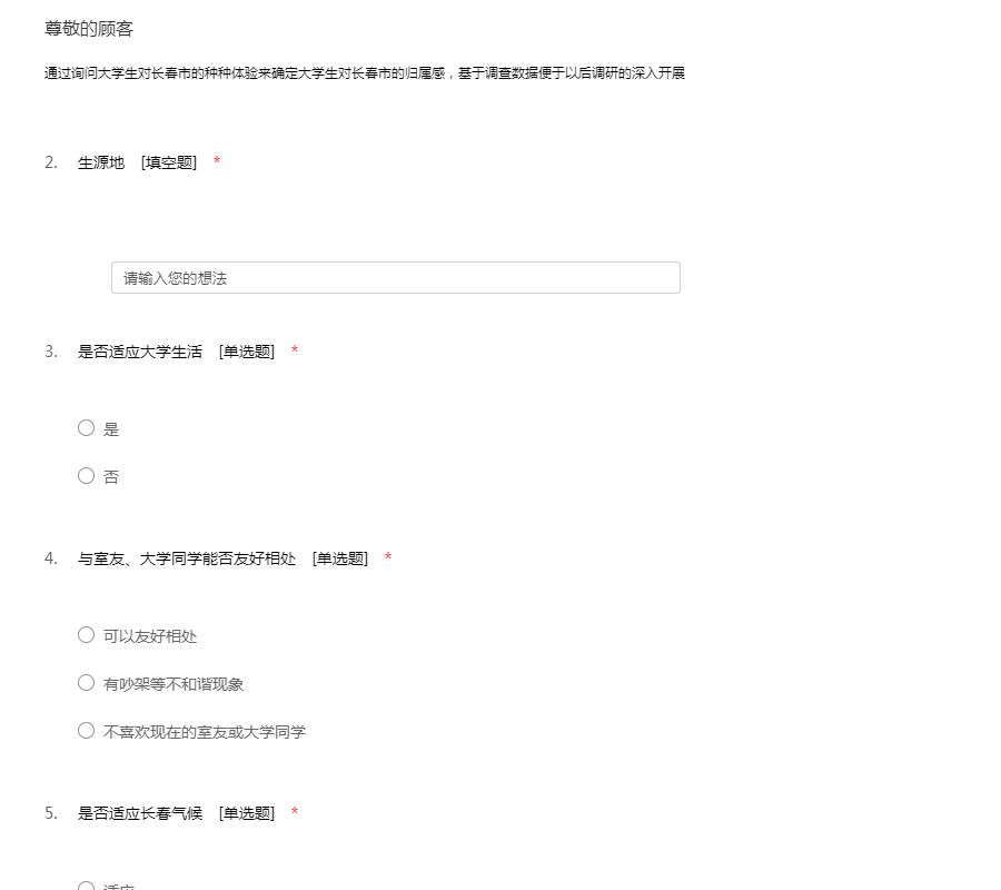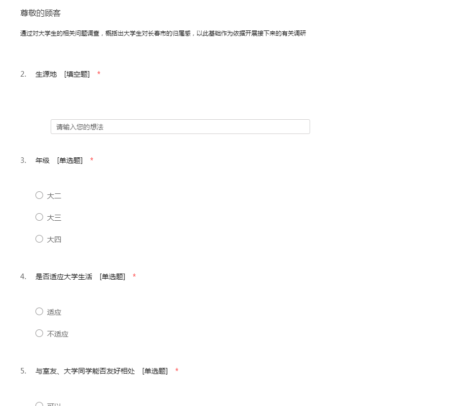 通过询问大学生对长春市的种种体验来确定大学生对长春市的归属感,基于调查数据便于以后调研的深入开展