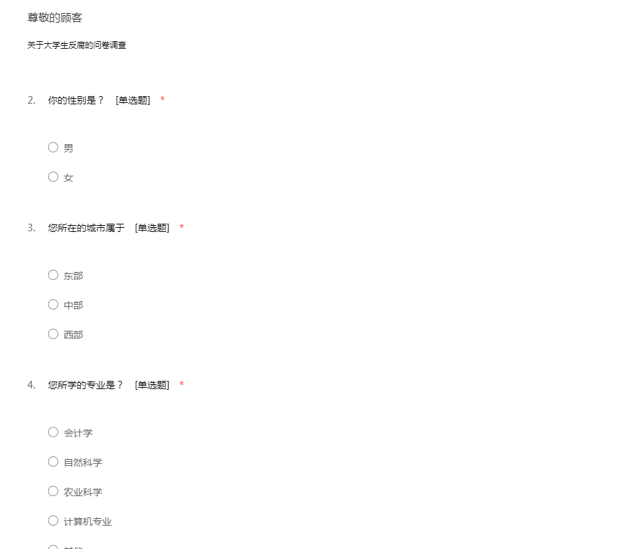 在这个竞争日益激烈的社会里,同学们的就业观也是多元化的,在这个教育影响日益增大的时代,大学生的就业观和就业行为严重地影响着社会经济的发展状况。因此,我们有必要对大学生的就业愿景进行一次调查,以达到一种引导和鼓励大学生们选择正确的就业观的目的。